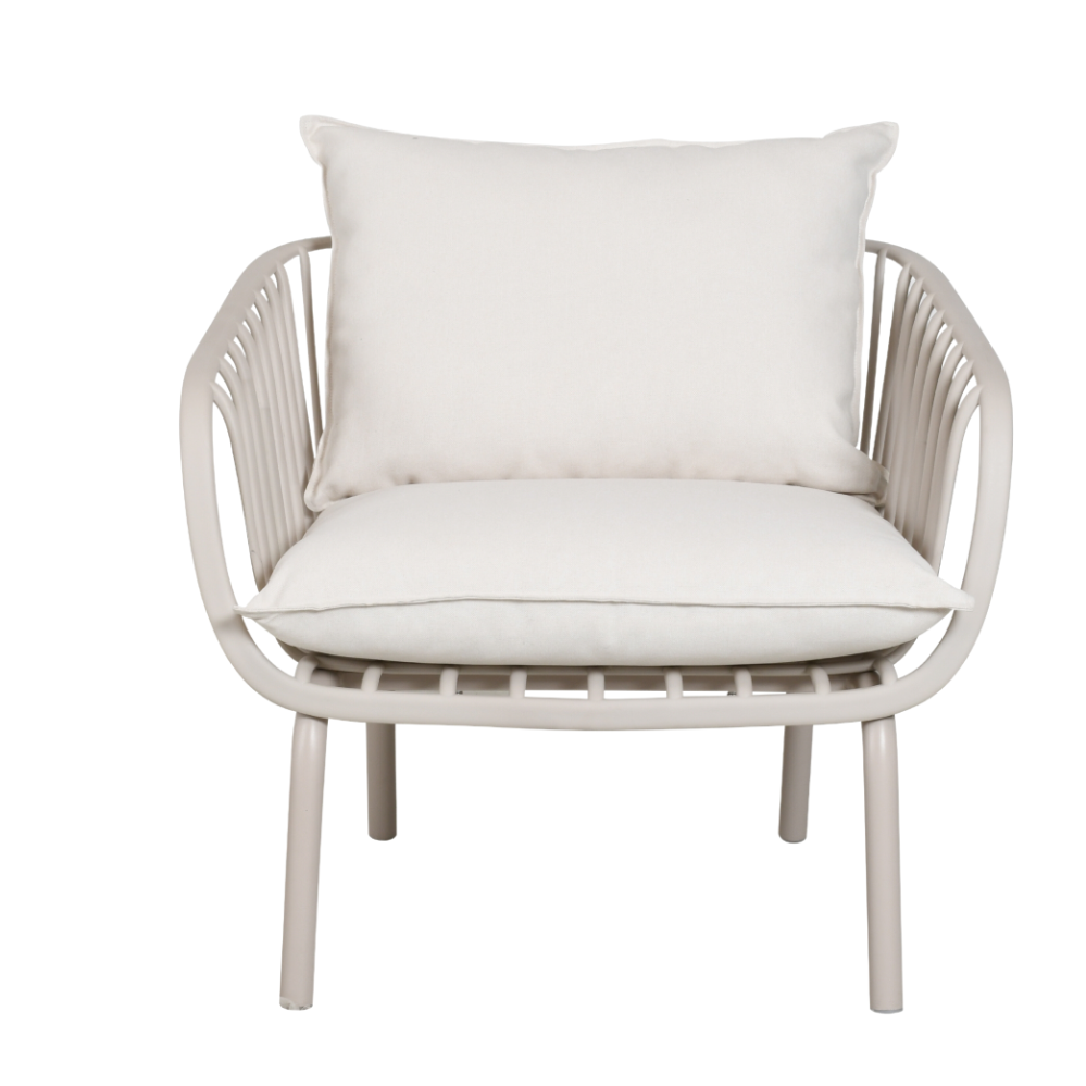O Sofá Noronha une design delicado e conforto incomparável, ideal para transformar qualquer espaço, seja interno ou externo, em um ambiente elegante e acolhedor. Com assento em polipropileno e estofado em tecido resistente à água, além da base em aço pintado, oferece durabilidade e estilo para seus momentos de descanso.